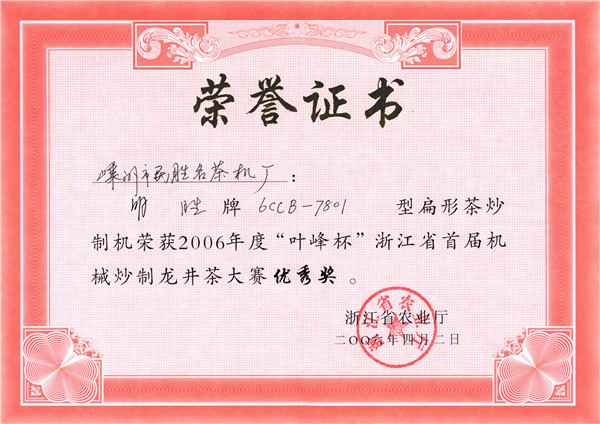 2006年優(yōu)秀獎(jiǎng)證書